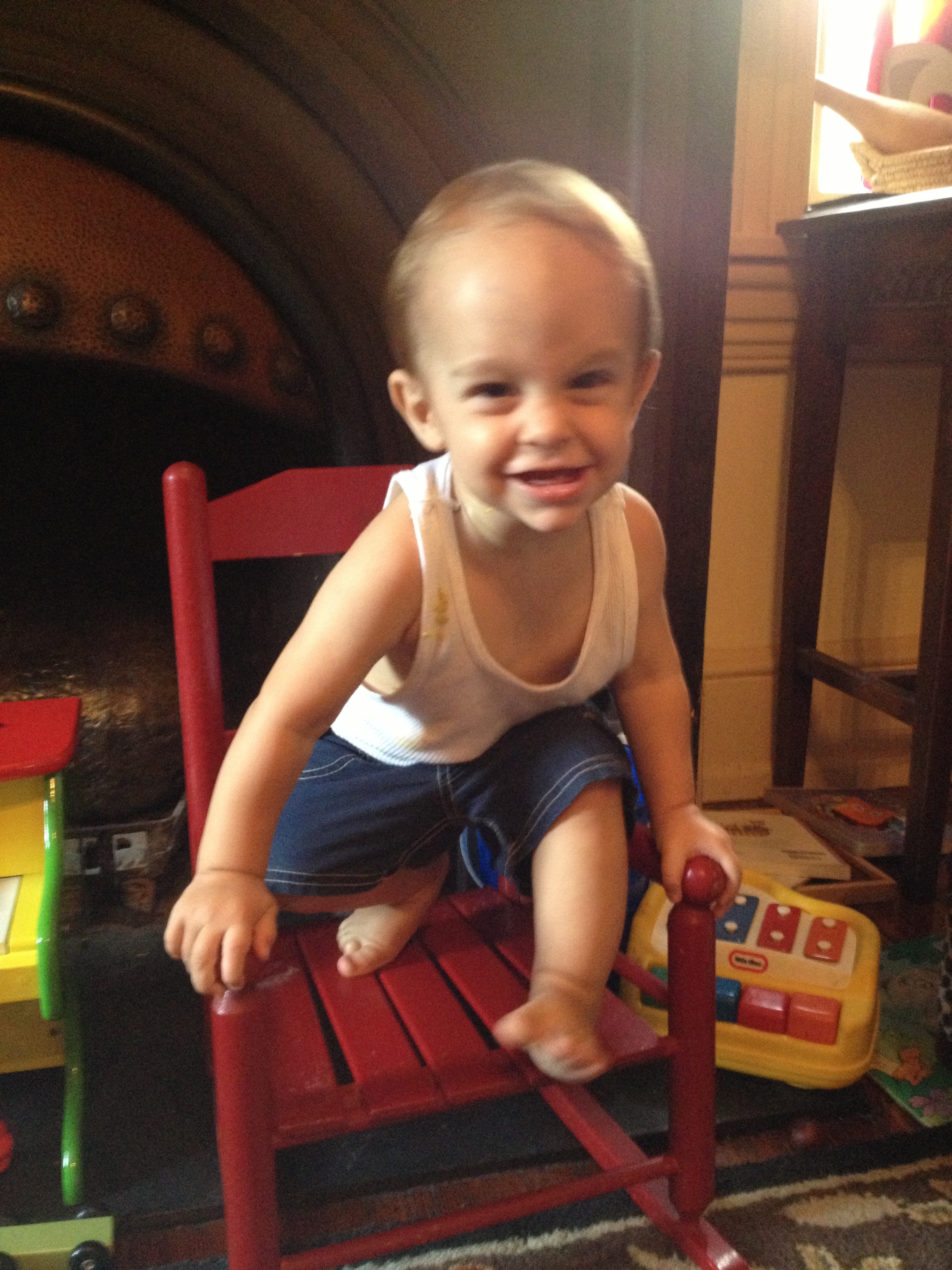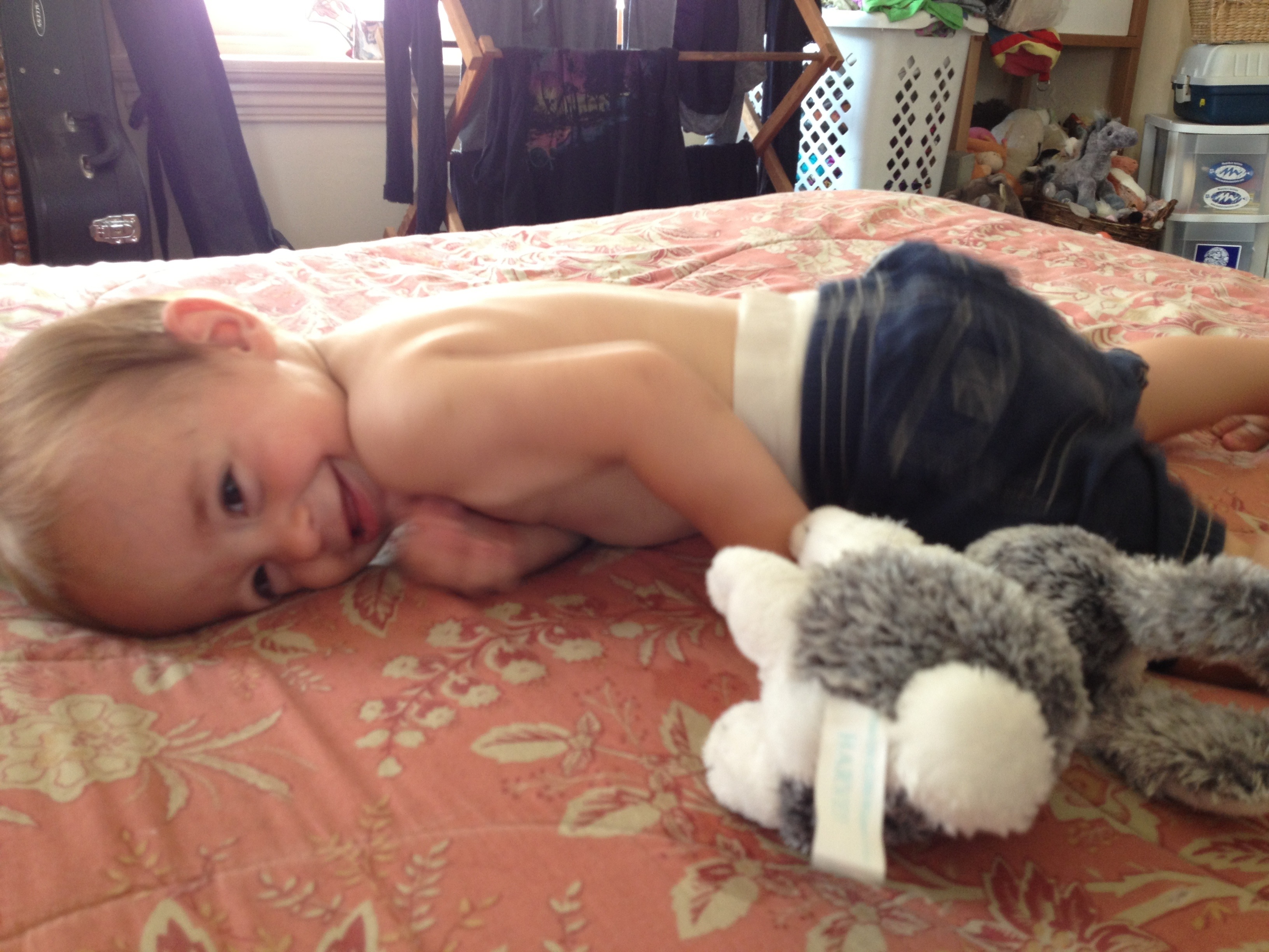 Hagan and I played really hard while papa worked on my bike:)