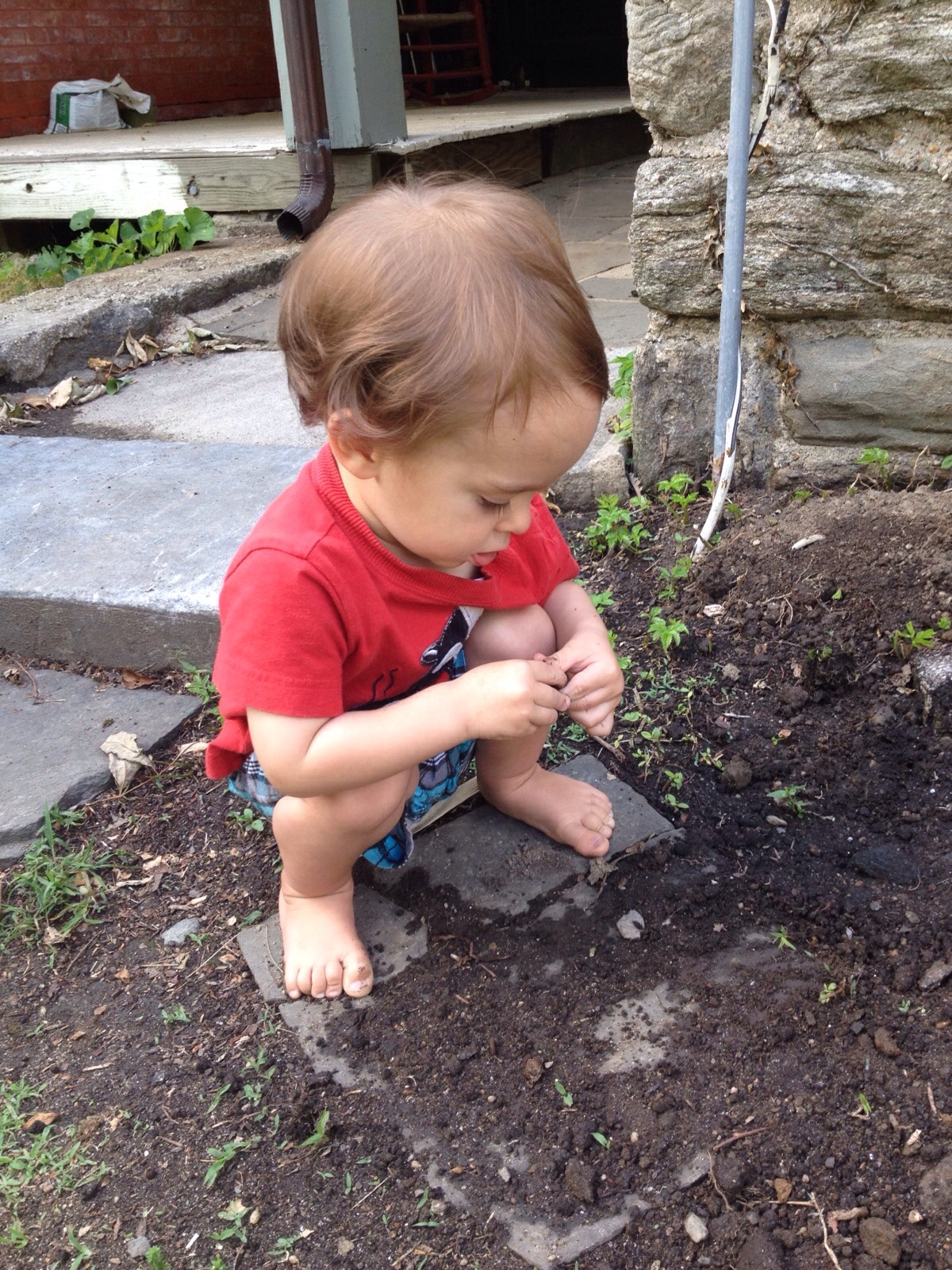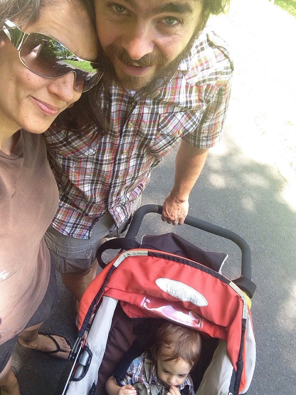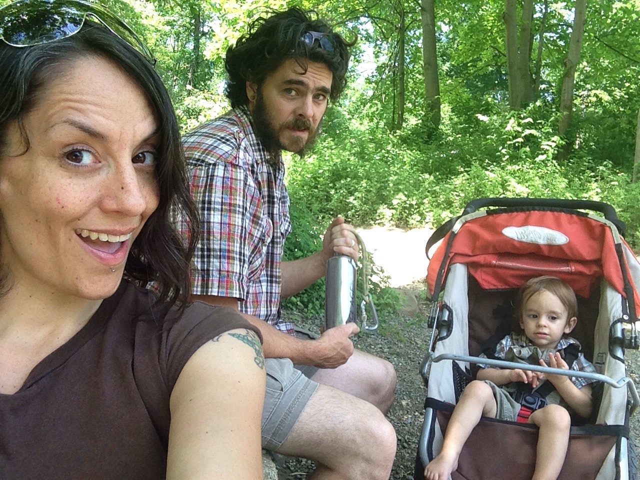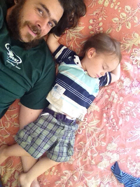 The reuniting has been super squishy sweet. Hagan is definitely happy to have his daddy. It’s so sweet it makes my teeth hurt! We strolled through a new (to us) park this weekend and played house. Hagan found our spices and tried on some cinnamon. I must say, he smelled delicious. The entire weekend was filled with perfect sunny days and the subtle start of fireflies!!!!! Although, now it’s raining without cooling….And I gave myself a haircut!