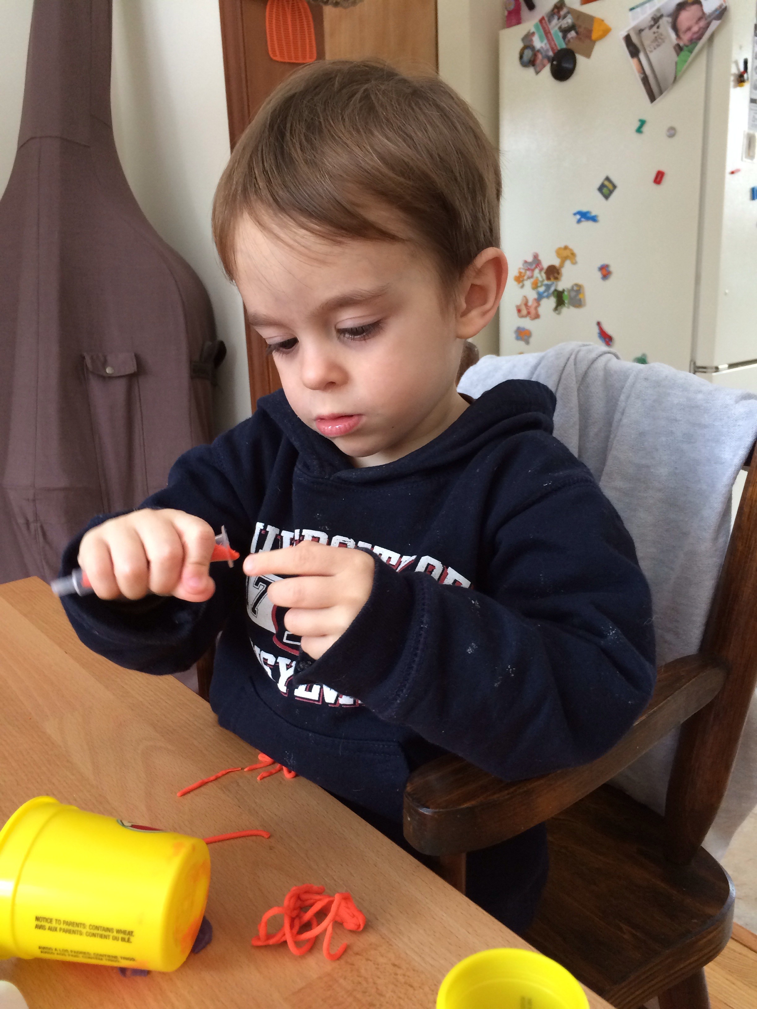 We are surviving the ice and snow. I have finally invested in a ton of salt to ensure safe travels down the driveway. It is a truly impressive amount of ice. Other things on the property include a beautiful red fox and my growing suspicion that our great horned owl actually lives in the bamboo forest next to the garage. I am fairly certain that he swooped me in a warning as I went in late at night to take out the recycling and salt the drive. Not much else to tell other than Hagan prefers the inside to outside (as do we all, I think- anything below 20C is just downright unbearable no matter what you’re wearing). He has been playing with playdoh, magnetic set, soft-bowling toys and measuring set with pantry items such as dry rice/beans/maccaroni. We are all excited to get outside again…whenever that is, who knows.